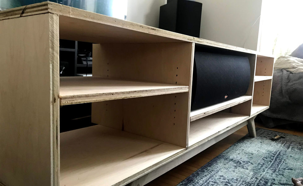 This Credenza was created as a phased process over a couple of years. The first phase included building a simple cabinet box build sized around my collected pieces of home theater equipment, and a leg structure of laminated skids and tapered legs. The credenza stayed in this form for about a year while I deliberated on the final aesthetic for this piece. In the second phase, I wanted to change this into a piece that was simple, but nuanced in a way that hopefully elicits a double-take. I took a departure from the bare-bones cabinet box to an undulating form that changes depending on where you view it. I achieved this through an ethos of creating three-dimensional forms from planar compositions, using the plywood in unexpected ways. The result is a credenza that successfully houses my home theater system, and also hopefully a piece that gets that double-take that I was looking for.